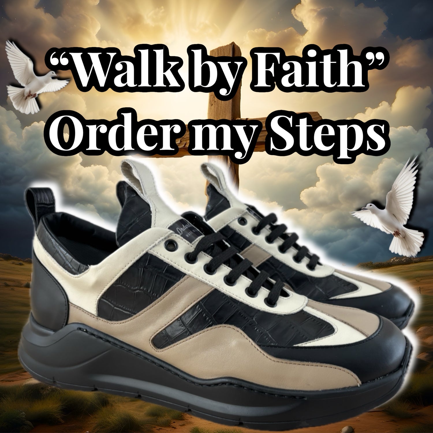 FAITH in GOD signature shoe! May GOD order our steps! Introducing the “Faith Walkers”Handcrafted in Italy and a perfect addition to the collection and way to complete your outfit in style!