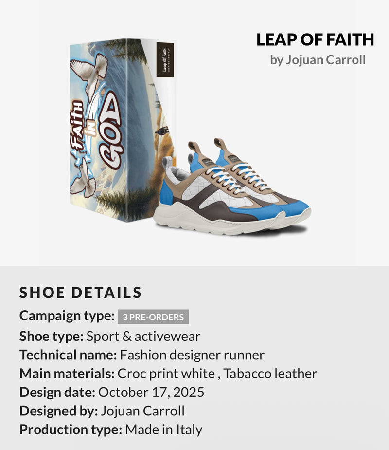 FAITH in GOD signature shoe! May GOD order our steps! Introducing the “Faith Walkers”Handcrafted in Italy and a perfect addition to the collection and way to complete your outfit in style! Male sizes: 7-13.5 US Female Sizes: 6-10.5 US Apply This Discount code: XTNTQNOLRNU for $30 Off & Free Shipping! On your order!